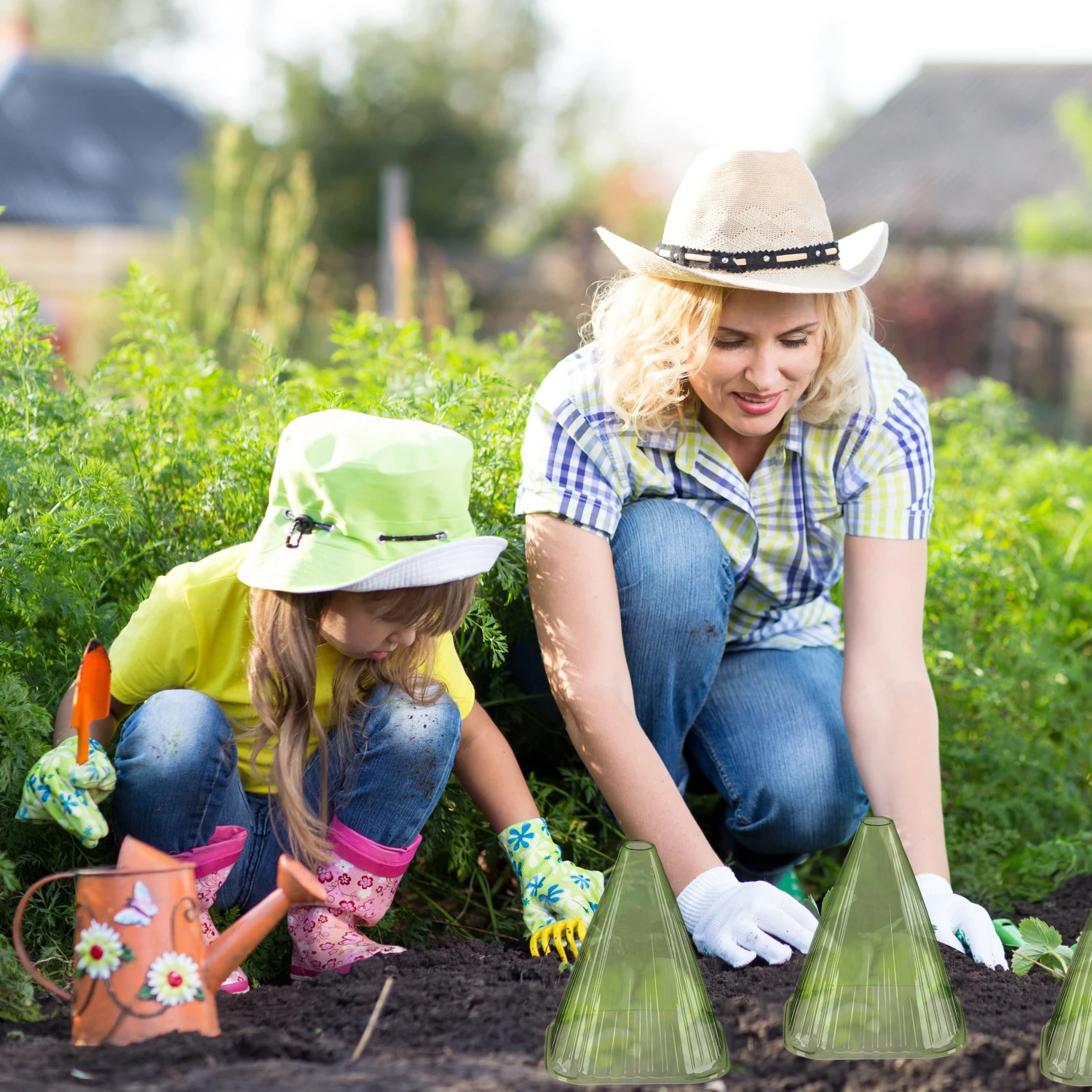 Mit den Pflanzenhauben überstehen Deine Jungpflanzen das wechselhafte Frühjahr sicher. Das in den Anzuchthauben aus PVC entstehende Mikroklima fördert das Pflanzenwachstum von Gemüsepflanzen und Salaten. Zudem sind die Pflanzhütchen die idealen Helfer, um Jungpflanzen vor starker Sonneneinstrahlung, Hagel, Frost und hungrigen Fressfeinden zu schützen. Die Handhabung ist denkbar einfach: Stülpe die Salathütchen einfach über die Setzlinge und beschwere die breiten Ränder mit Erde.