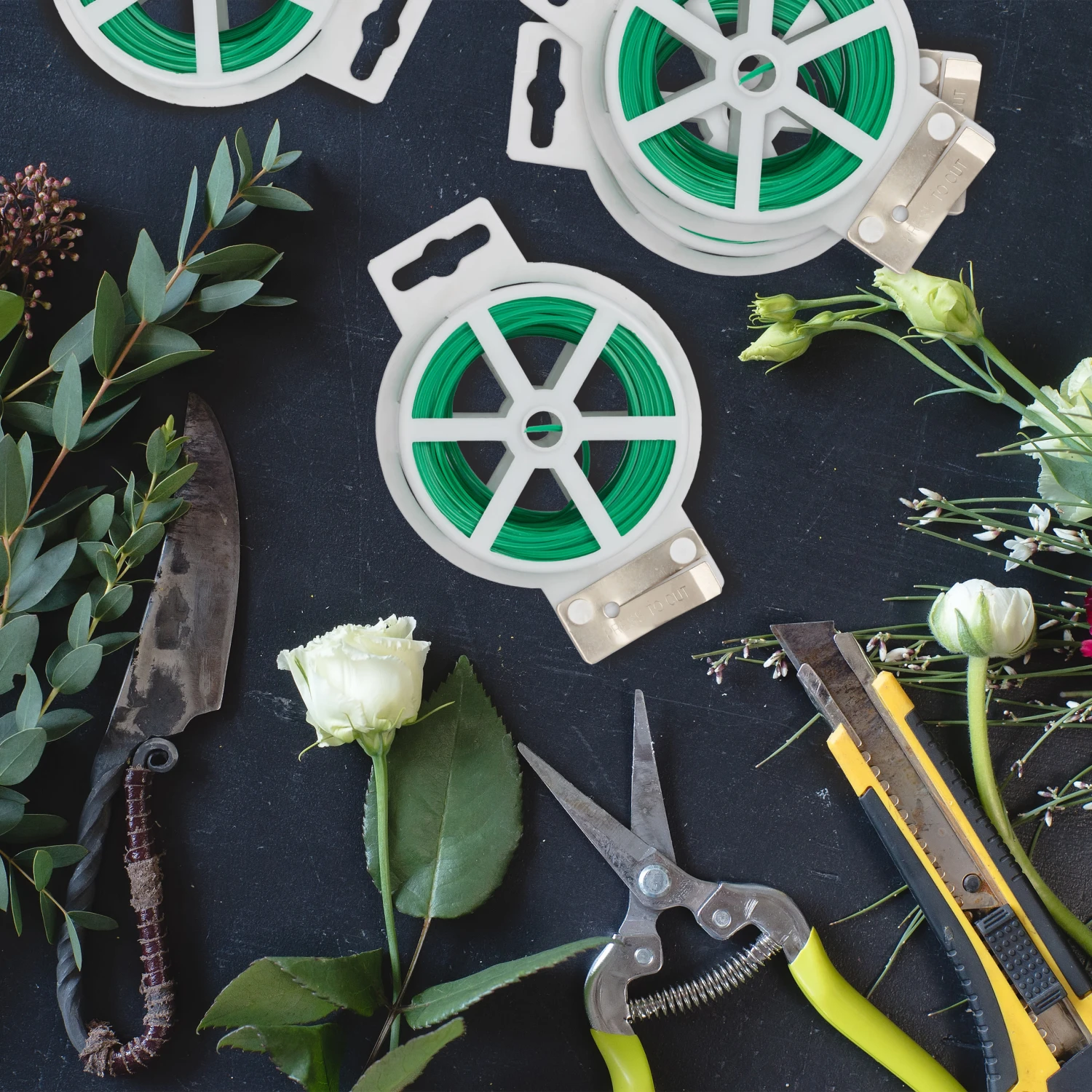 Um Deine Pflanzen beim Ranken zu unterstützen und die Wuchsrichtung zu beeinflussen, kannst Du diesen Bindedraht zur Hilfe nehmen. Fixiere Stiele, Stängel und Zweige flexibel mit dem kunststoffummantelten Metalldraht. Durch seine Farbgebung wird der Pflanzdraht auf grünem Untergrund nahezu unsichtbar und eignet sich daher wunderbar für Gartenarbeiten oder floristische Tätigkeiten. Der Draht lässt sich einfach aus der Spule ziehen und mit dem integrierten Schneider direkt auf Wunschlänge bringen.