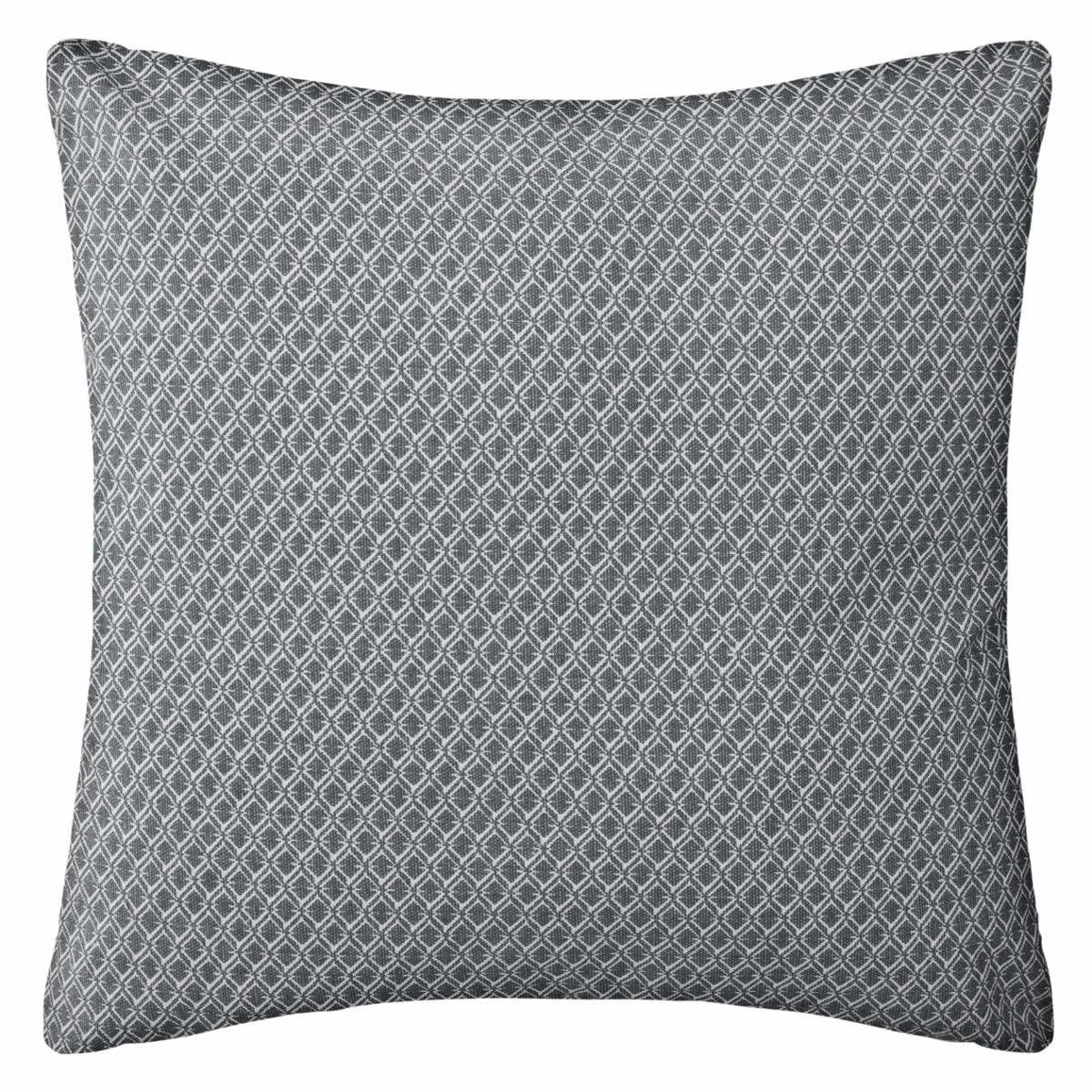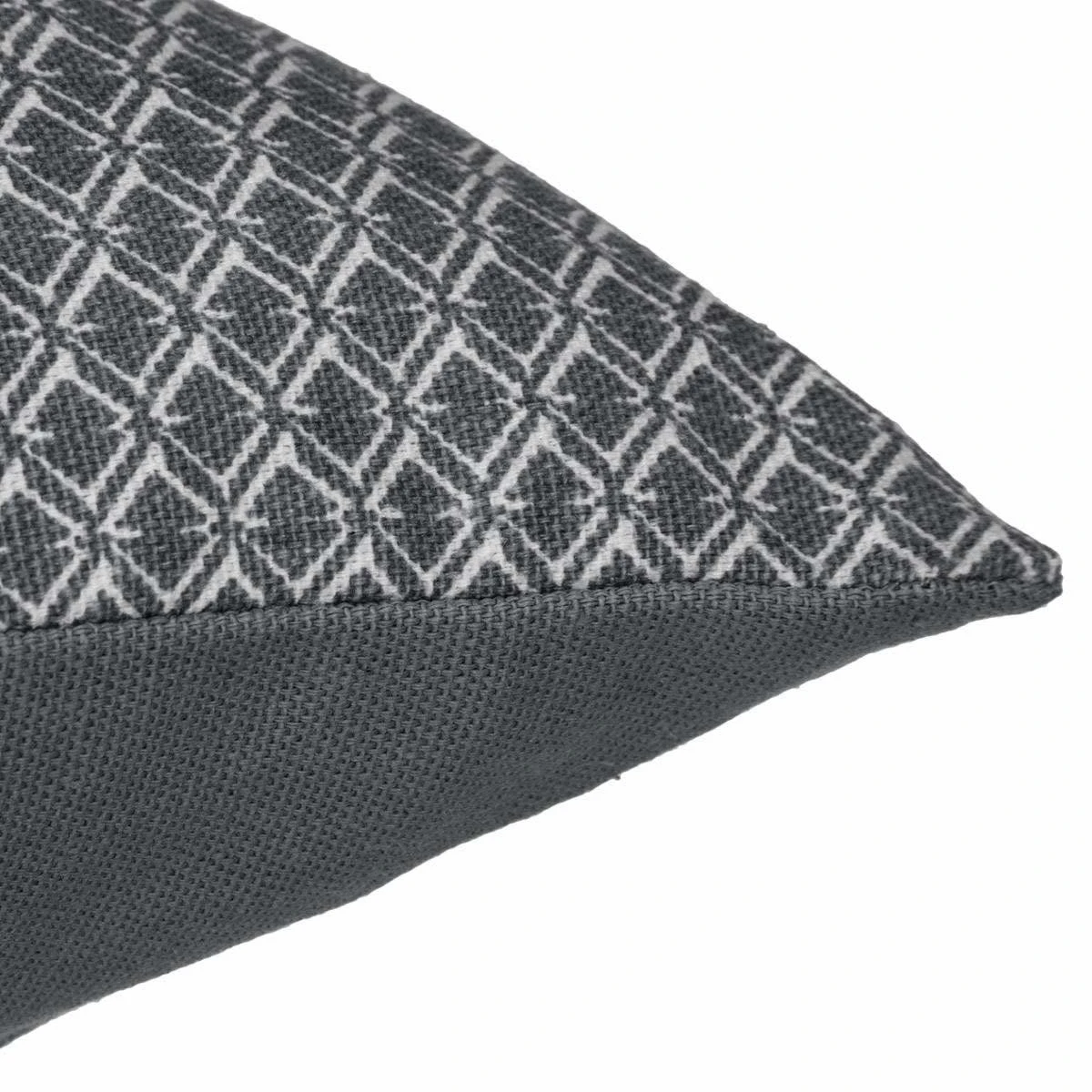 Das graue Dekokissen mit attraktiver Ornamentik besteht aus hochwertigem, strapazierfähigem Gewebe. Sie hat einen dekorativen Druck, der ihr einen modernen Charakter verleiht. Es ist leicht zu reinigen. Bei Verschmutzung kann die Beschichtung entfernt und bei niedriger Temperatur gewaschen werden.