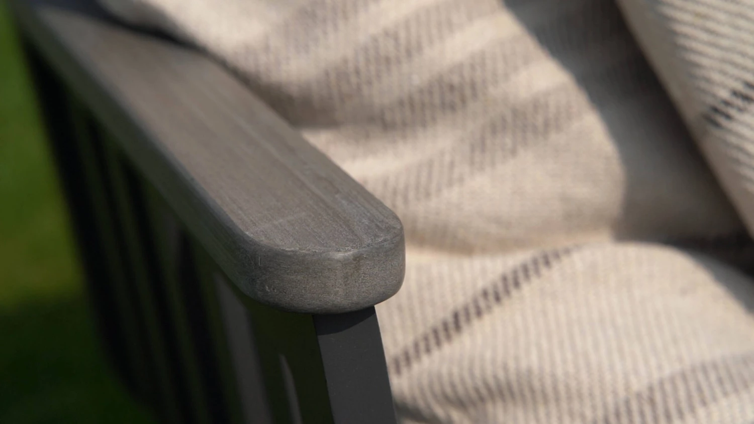 Die Armlehnen der Liegen sind aus widerstandsfähigem Polywood gefertigt und sorgen für zusätzlichen Komfort.