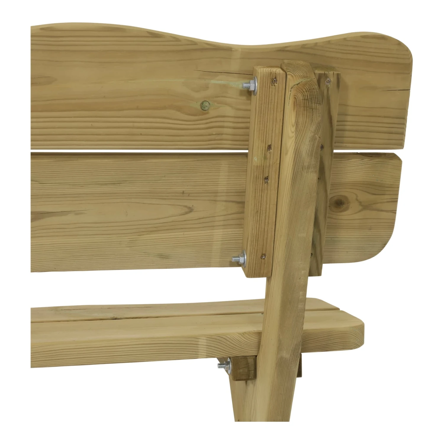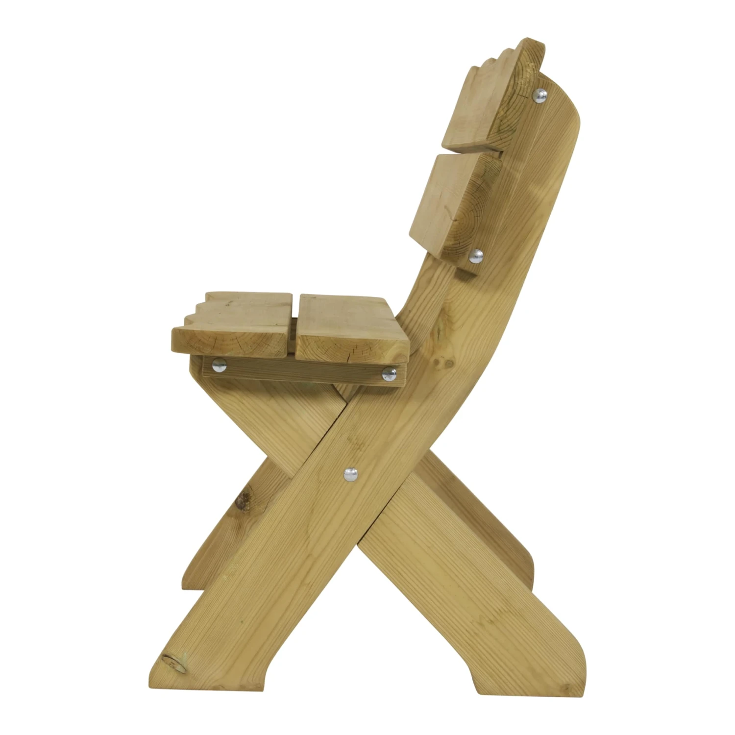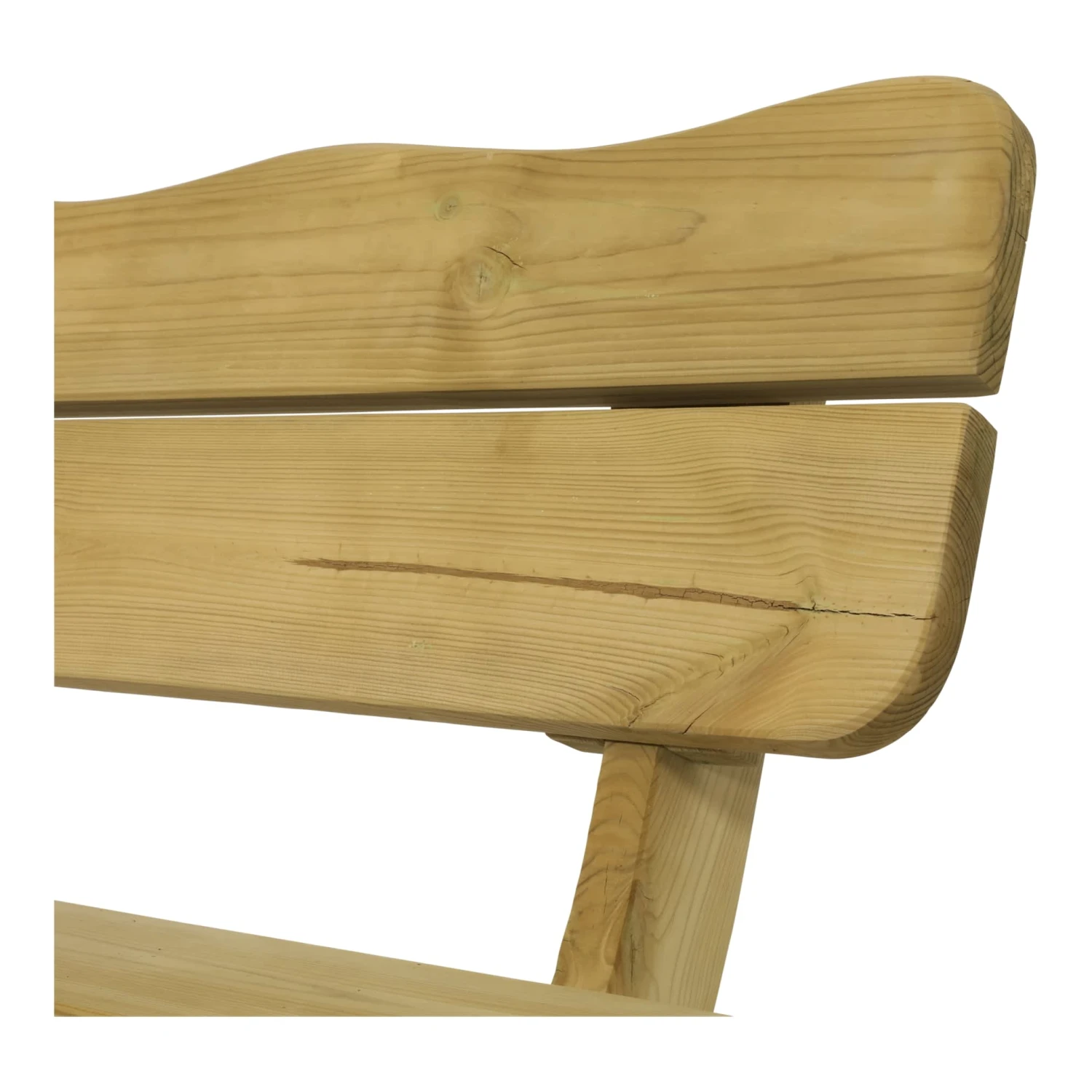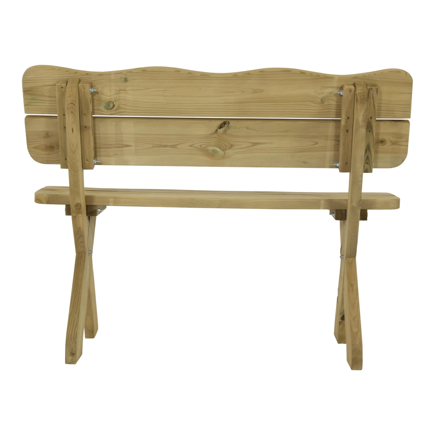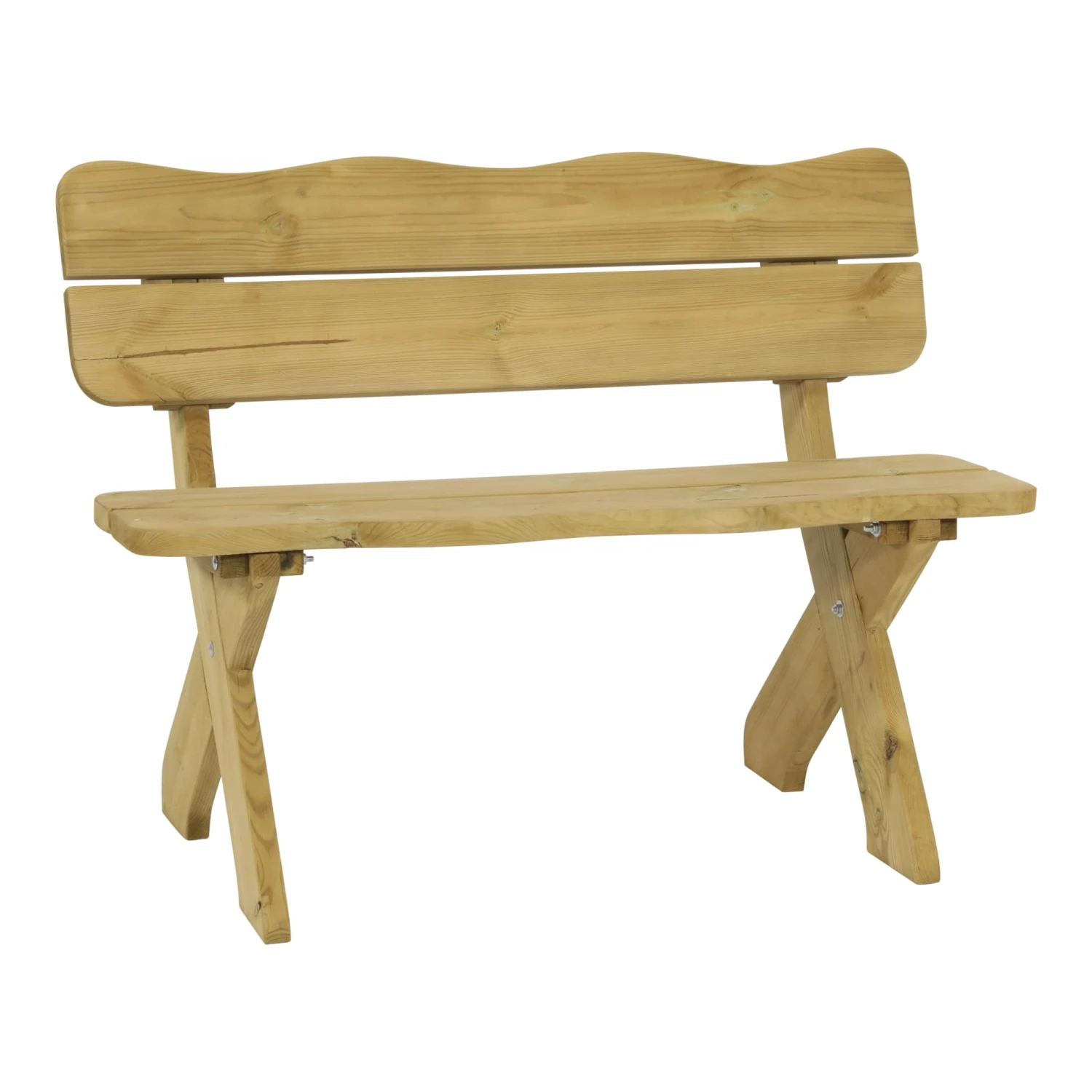 Die natürlich geschwungene Rückenlehne, das klassische Kreuzbeingestell und natürlich das echte Kiefernholz machen die Bank zu einem attraktiven Landhausstil Accessoire.