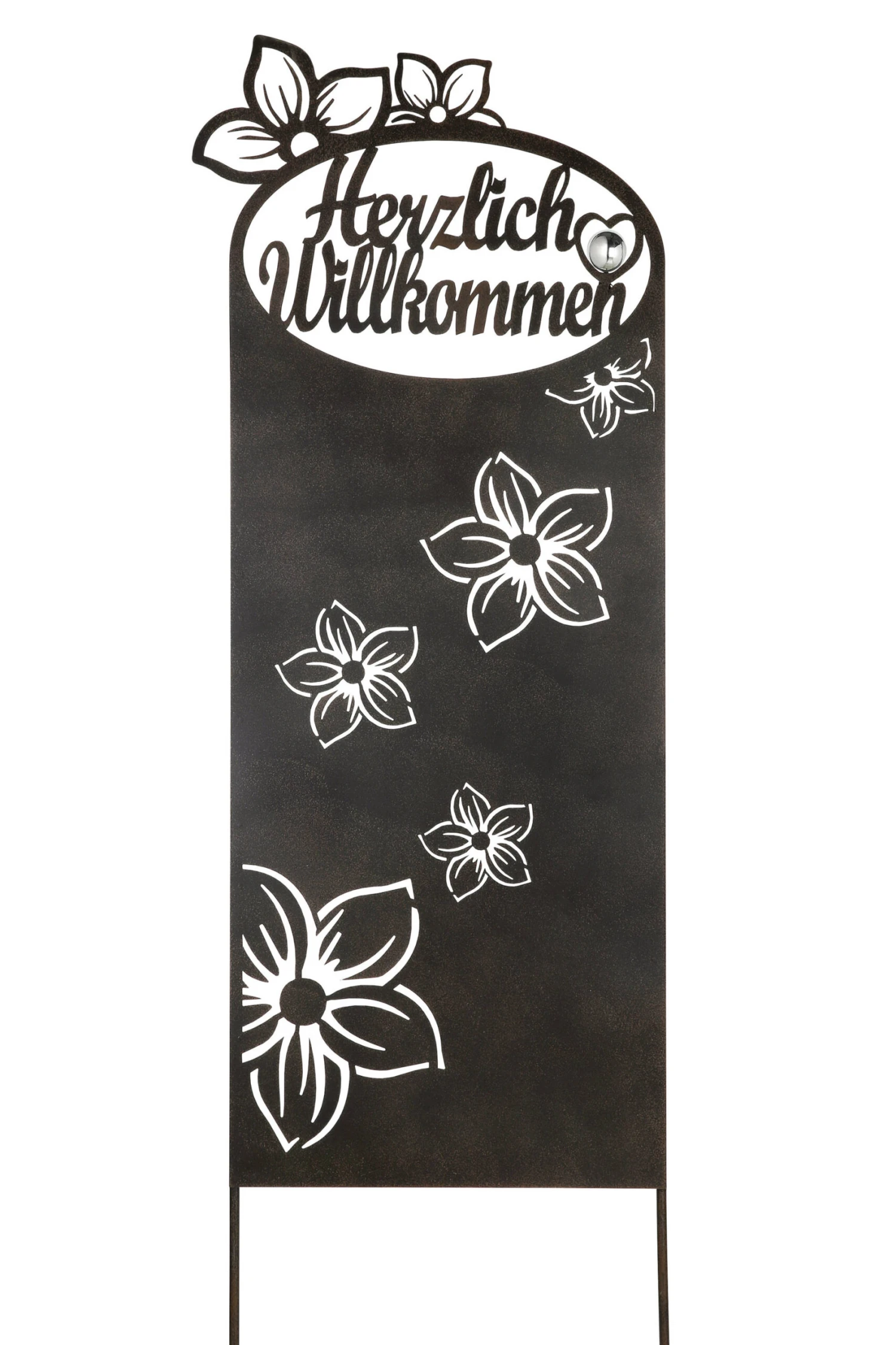 Metall Gartenstecker „Herzlich Willkommen“