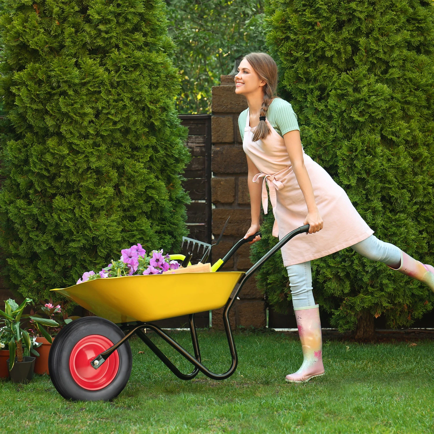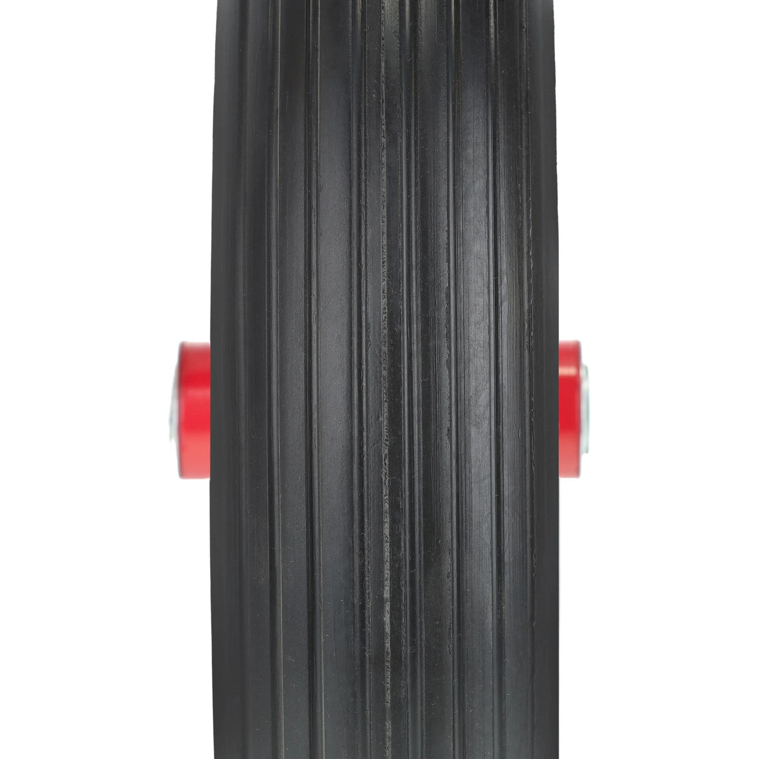 Mit diesem Karrenrad aus Vollgummi holst Du Dir einen pannensicheren Reifen für Deine Gartenkarre nach Hause. Der Ersatzreifen ohne Luft ist unempfindlich gegen Dornen, Nägel und andere spitze Gegenstände und verfügt über einen geringen Rollwiderstand, was für eine einfache Handhabung sorgt. Da kein Luftverlust nach längerer Standzeit droht, ist der Vollgummireifen außerdem immer einsatzbereit. Das robuste Kugellager des Komplettreifens sorgt dank geringer Reibungen für einen hohen Fahrkomfort.